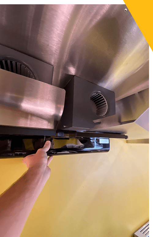 Fire Suppression FireBot uses a specially formulated liquid fire suppressant that is non-toxic and 100% biodegradable. This suppressant has three key functions: it extinguishes flames (including grease and oil fires), cools the cooktop surface, and applies a surfactant on the surface of pans to create a physical barrier that prevents reflashes from occurring by keeping oxygen away from the fire. Competitors’ models use a dry powder that relies on gravity and only provides protection where the powder happens to land.